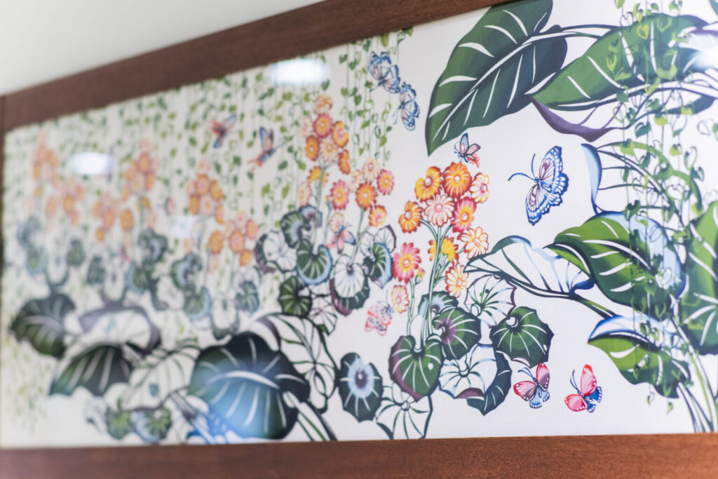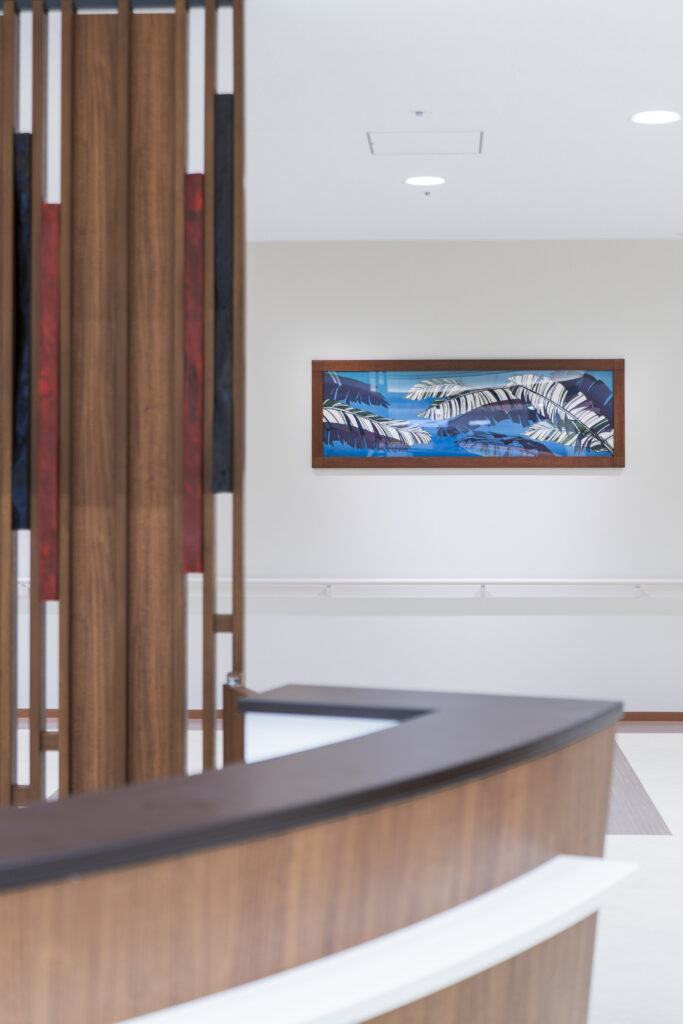 全国の医療施設や公共施設の環境空間アートプロデュースを行う株式会社アートココ様より依頼を受け、待合室やエレベーターホール、病室などの各所に紅型、陶板、織物などの工芸品をアートとして設置させていただきました。
